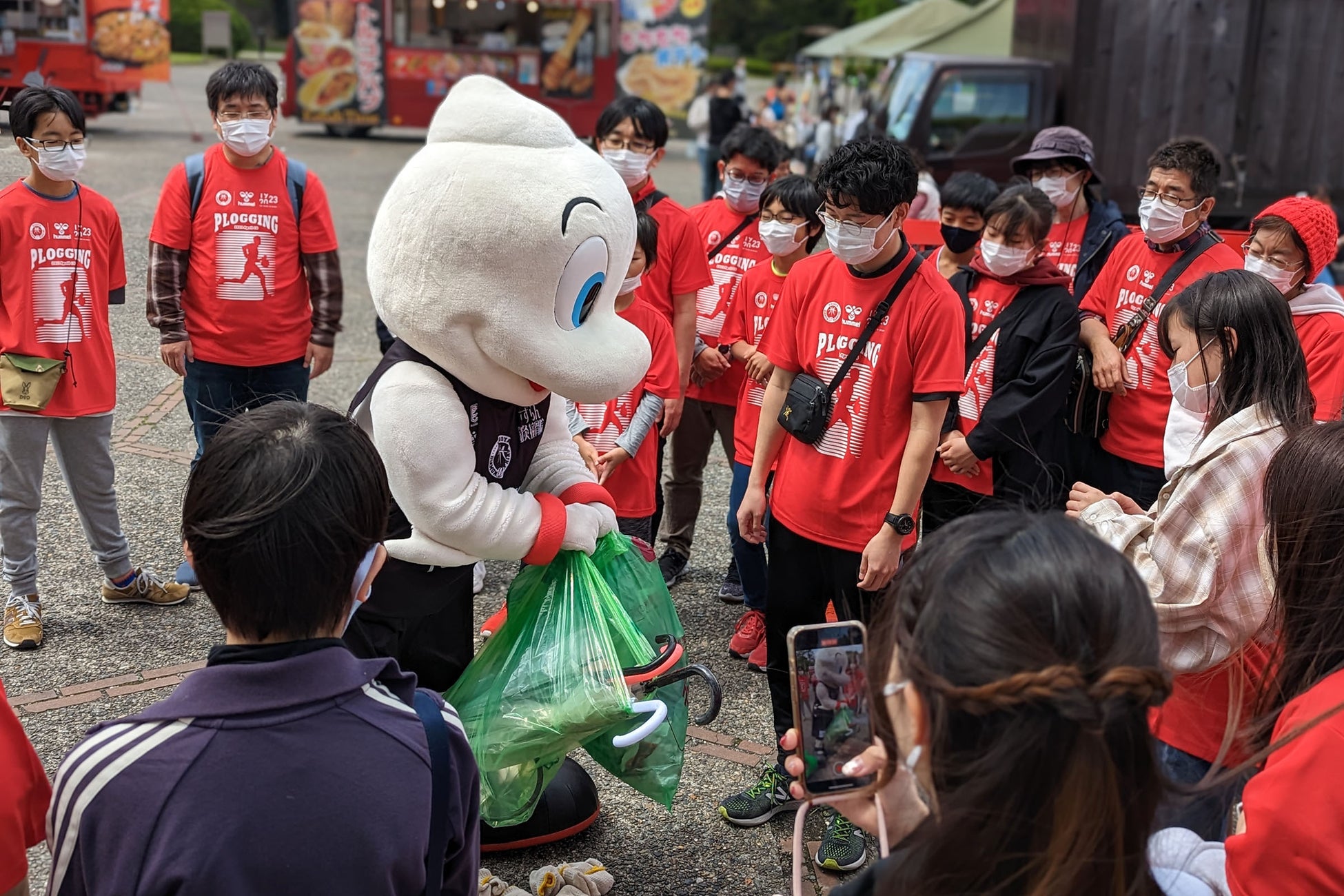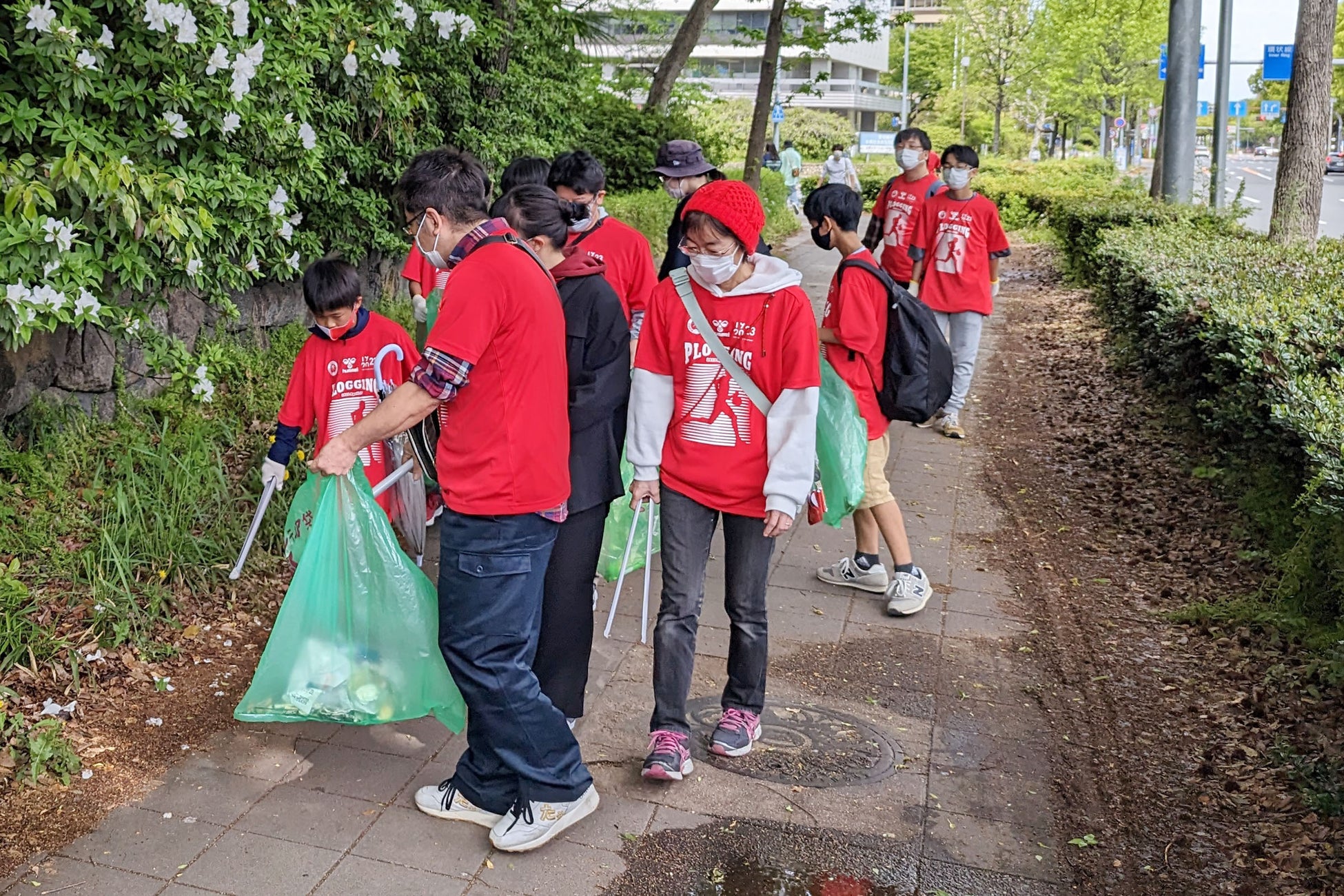 4月16日には、ゴミ拾い(PlockaUpp)とジョギング(Jogging)を合わせたスウェーデン発Newフィットネス「プロギング」を実施。30名ほどの参加者が名城公園と丸の内の二手に分かれ、アリーナ周辺の清掃活動を行った。