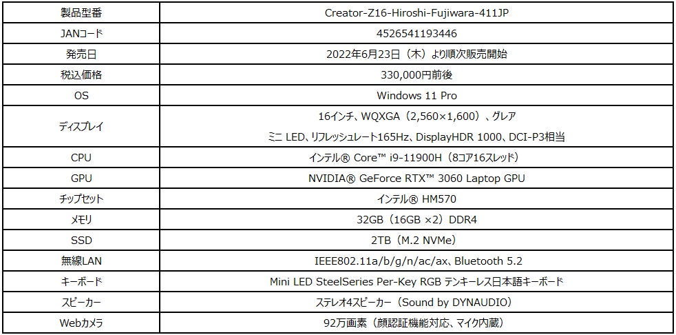 “fragment design”とコラボレーションした大人気クリエイターノートPCが復活! 「Creator-Z16-Hiroshi-Fujiwara-411JP」発売