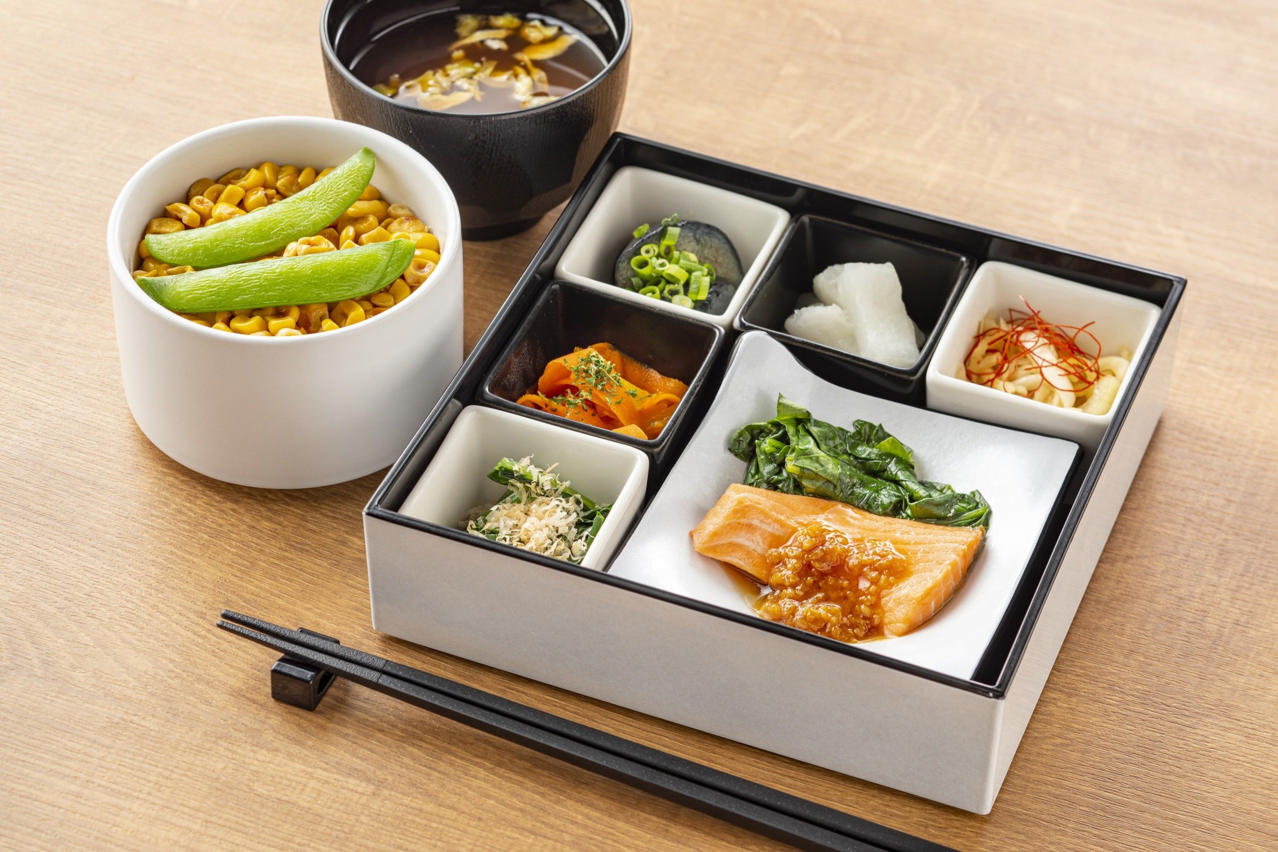 5.「ステイモーニング」(お部屋での朝食) 客室内の電子レンジで調理が出来る朝食をご用意いたします。お部屋で温めていただくことで、お好みのタイミングで召し上がることができ、忙しい朝の時間もゆっくりとお過ごしいただけます。朝食は和食、 または洋食をお選びいただけます。