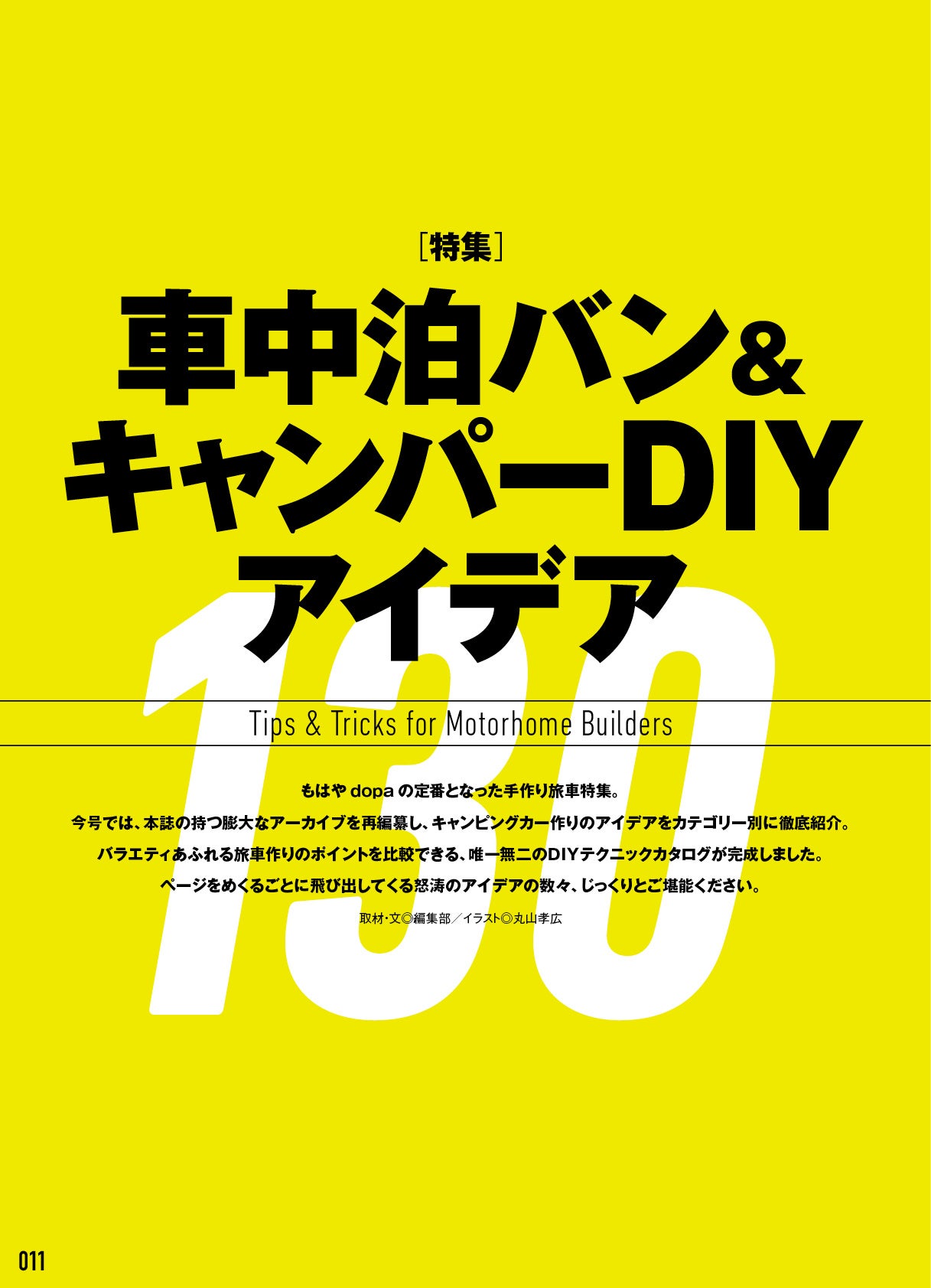- 特集は「車中泊バン&キャンパーDIY アイデア130」