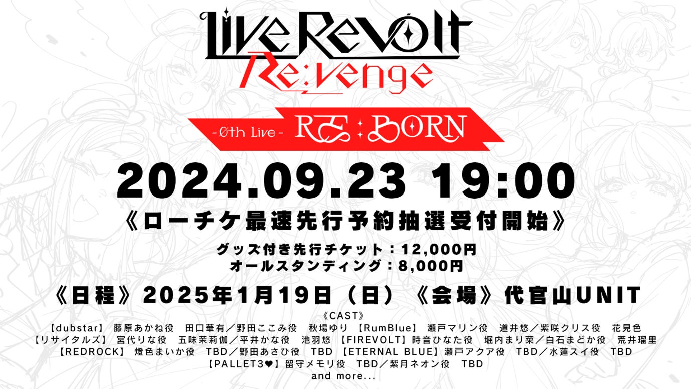ライブレボルト最新作「LiveRevolt Re:venge」1月19日(日)開催0th Live"Re:BORN"チケット最速先行受付が開始