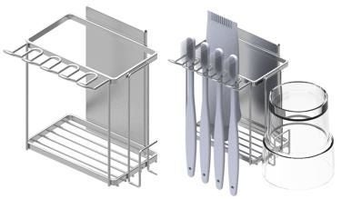 ラインアップは、気軽につるせるフックや、ソープトレー、歯ブラシスタンド、ボトルラック、多目的に使えるトレーの5アイテムをご用意。フック以外の底面はスリットが入っており水が溜まらない為、ぬめりやすいディスペンサー等の底面も清潔に保つことができます。