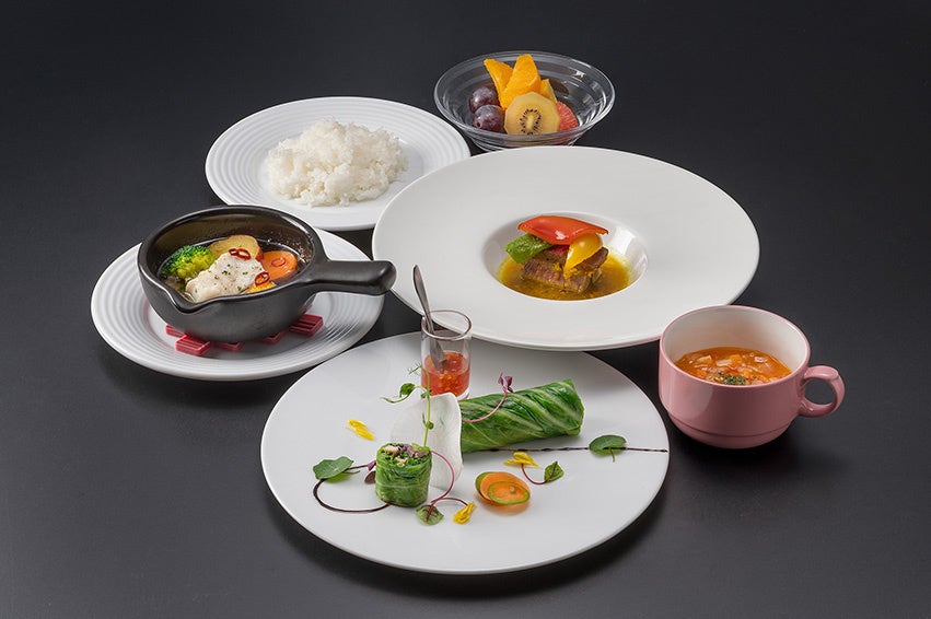 館内レストラン全5店舗にて、事前予約なしでご利用いただけるベジタリアン向けメニューの提供を行っております。日本料理や鉄板焼き、中国料理、フランス料理などの多彩なメニューからお選びいただくことができ、一部店舗ではコースメニューだけでなく単品メニューもお楽しみいただけます。