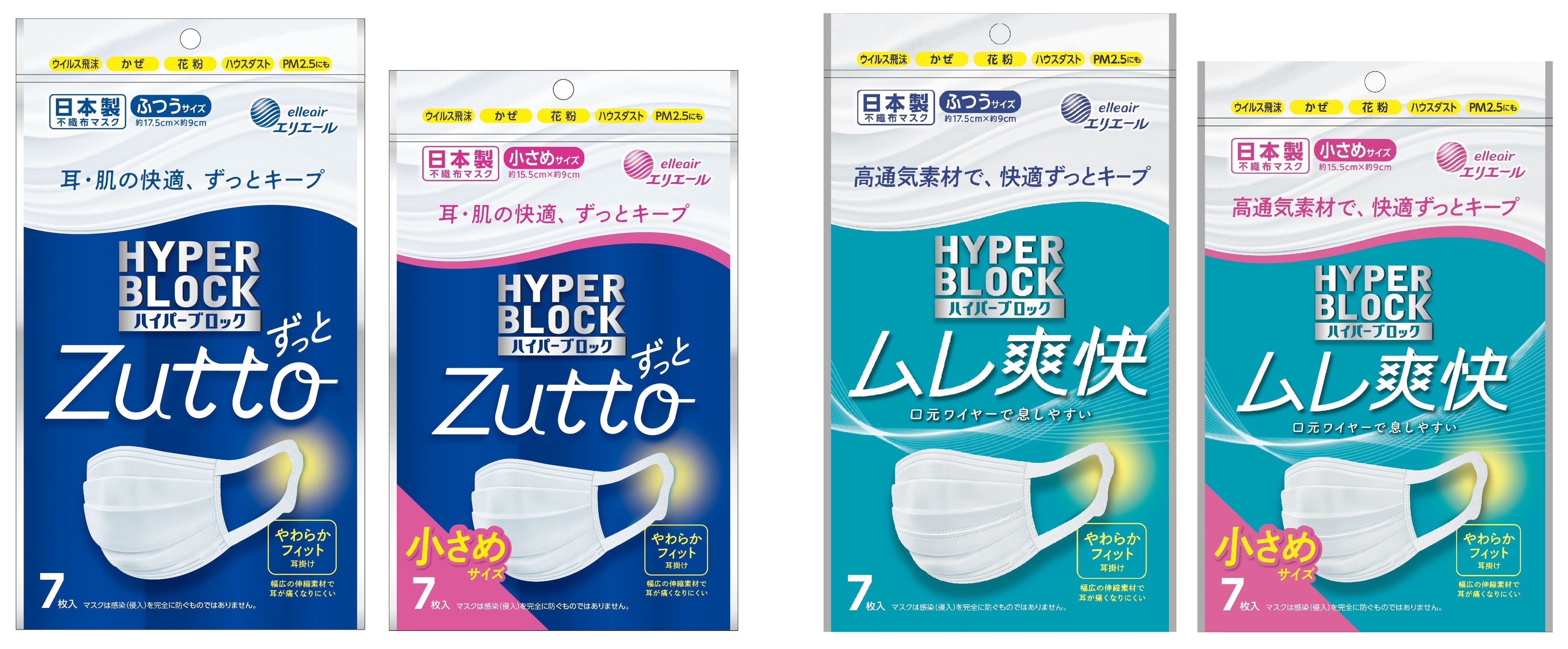 エリエールの「ハイパーブロックマスク」は、“耳・肌の快適・ずっとキープ”をコンセプトに、長時間つけていても耳が痛くなりにくく、毛羽立ちや型崩れしにくい「Zutto」をはじめとする、快適で高機能な商品を今後も展開していくことにより、これからの新しいマスク習慣を支えてまいります。