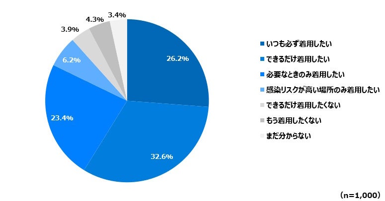 今後のマスク着用に関する意識・行動変化調査 「個人の判断」でも約9割の方がシーンに応じてマスク着用を今後も続けたい!