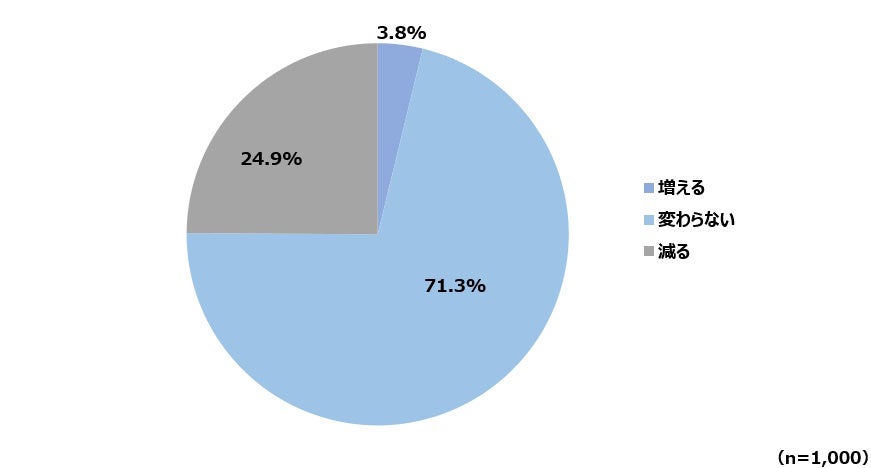 新型コロナウイルスの感染症法上の位置づけが5類に移行後、今後のマスク購入量に変化があると思うかを尋ねたところ、71.3%の方が「変わらない」と回答しました。