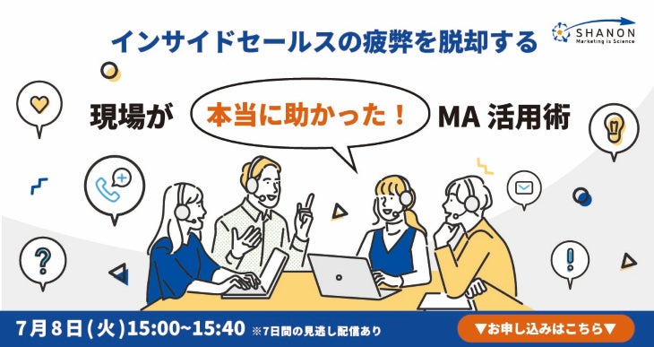 株式会社シャノン(本社:東京都港区、代表取締役CEO:山﨑 浩史)は、7月8日(火) に「ISの"商談数増加に導いた再現性のある仕組みづくり"」をご紹介するセミナーを開催いたします。