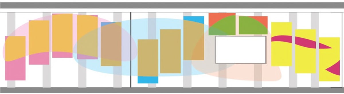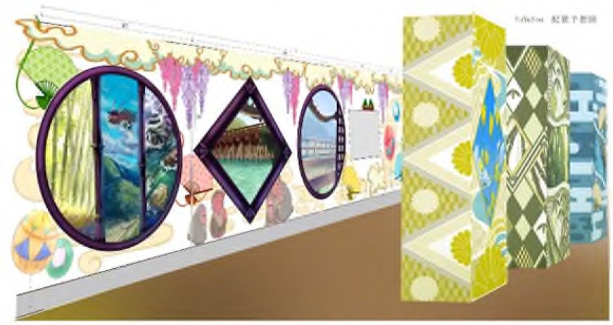プレゼン審査を経て選ばれた学生グループ6組が、四条通地下道(12番出口~13番出口間)の壁や柱にそれぞれの感性を活かしたアート作品を一斉に掲出。バラエティ豊かな6つのアート作品が地下道を彩り、歩いて楽しい空間を創出します。