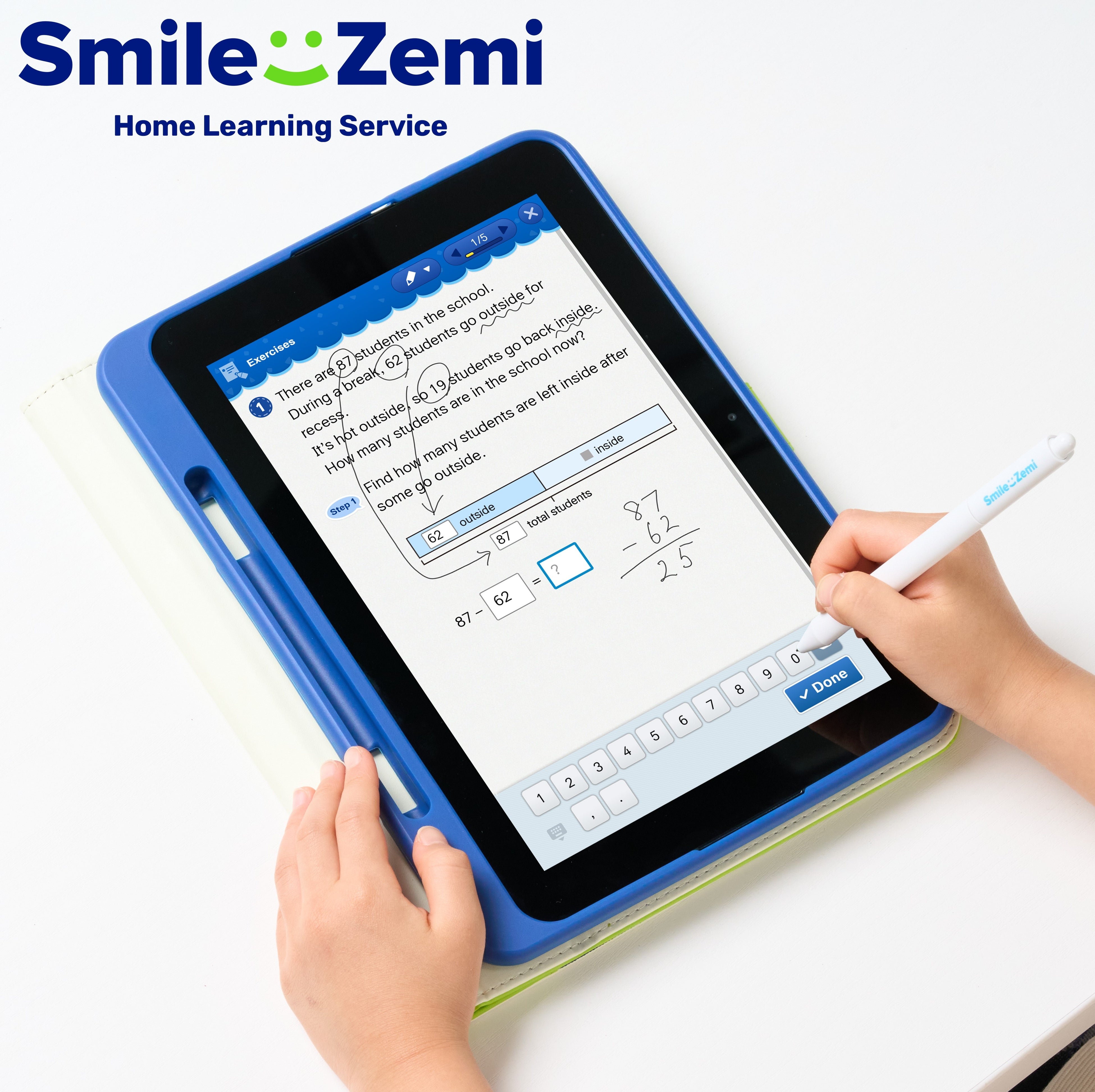 「Smile Zemi」は小学生(Grade1-Grade5)を対象として、算数(Mathematics)と国語(English Language Arts)を強化するために開発されました。子ども一人ひとりの学習状況を分析し、それぞれに最適な教材を提案することで、自分専用の家庭教師がいるように、自立的な学習を進めることができます。