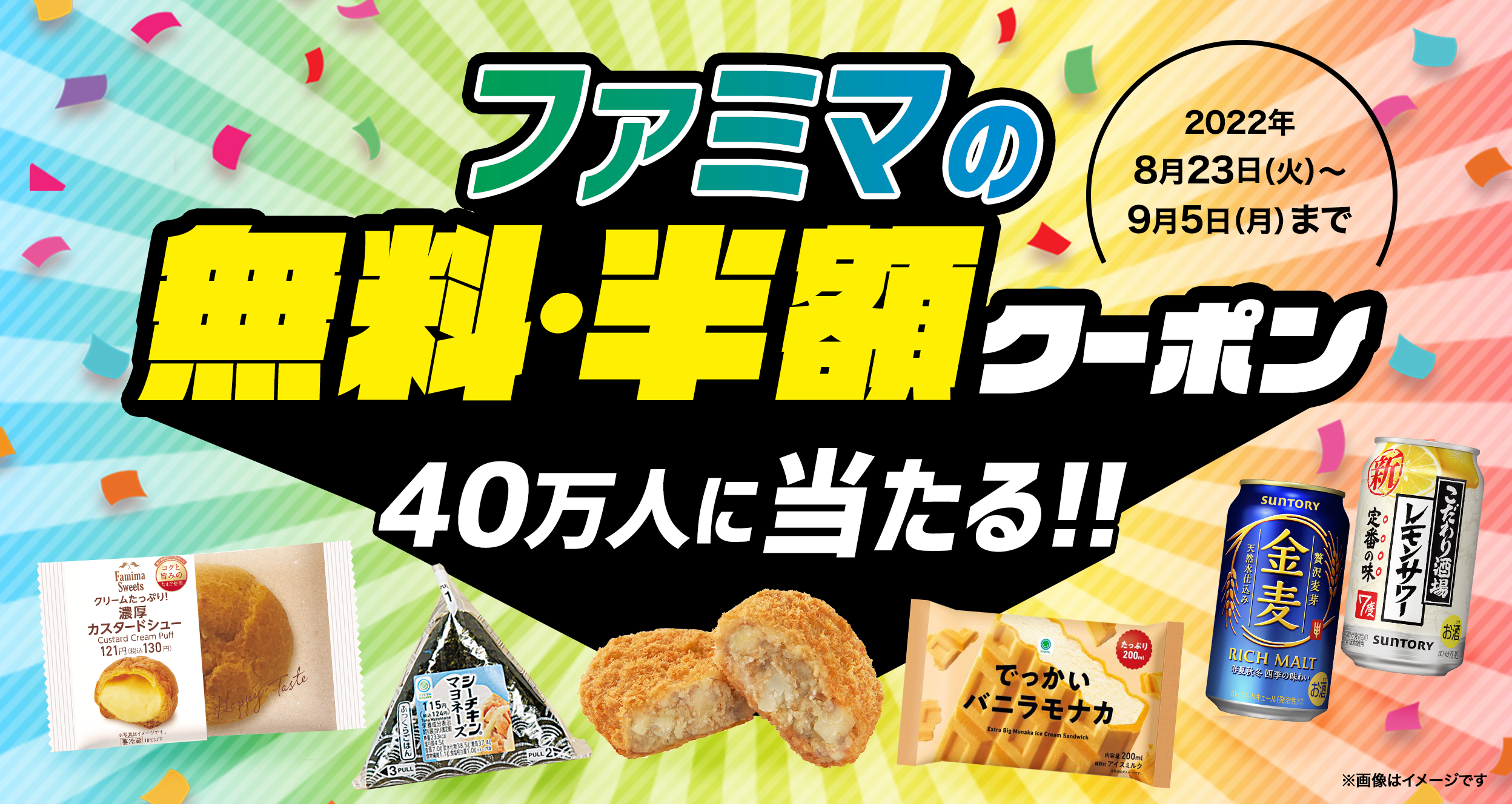 スイーツにおむすび、アルコール飲料にソフトドリンクまでが無料・半額に!
