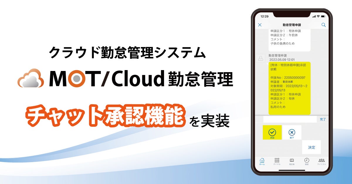 勤怠管理システム「MOT/Cloud勤怠管理」残業申請などの各申請をチャットで通知し、チャット内で内容確認・承認ができるチャット承認機能の実装~承認業務の効率化が可能~
