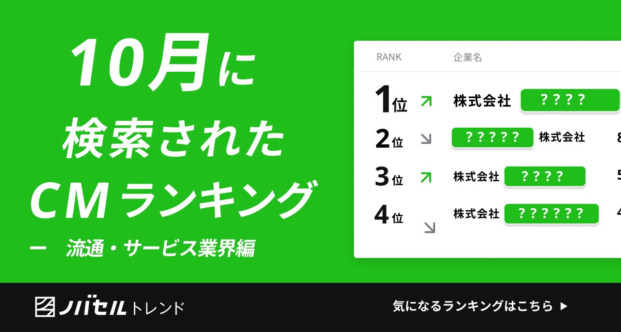 ~ノバセル発表、2025年10月 視聴者が検索したテレビCMランキング【流通・サービス業界編】~