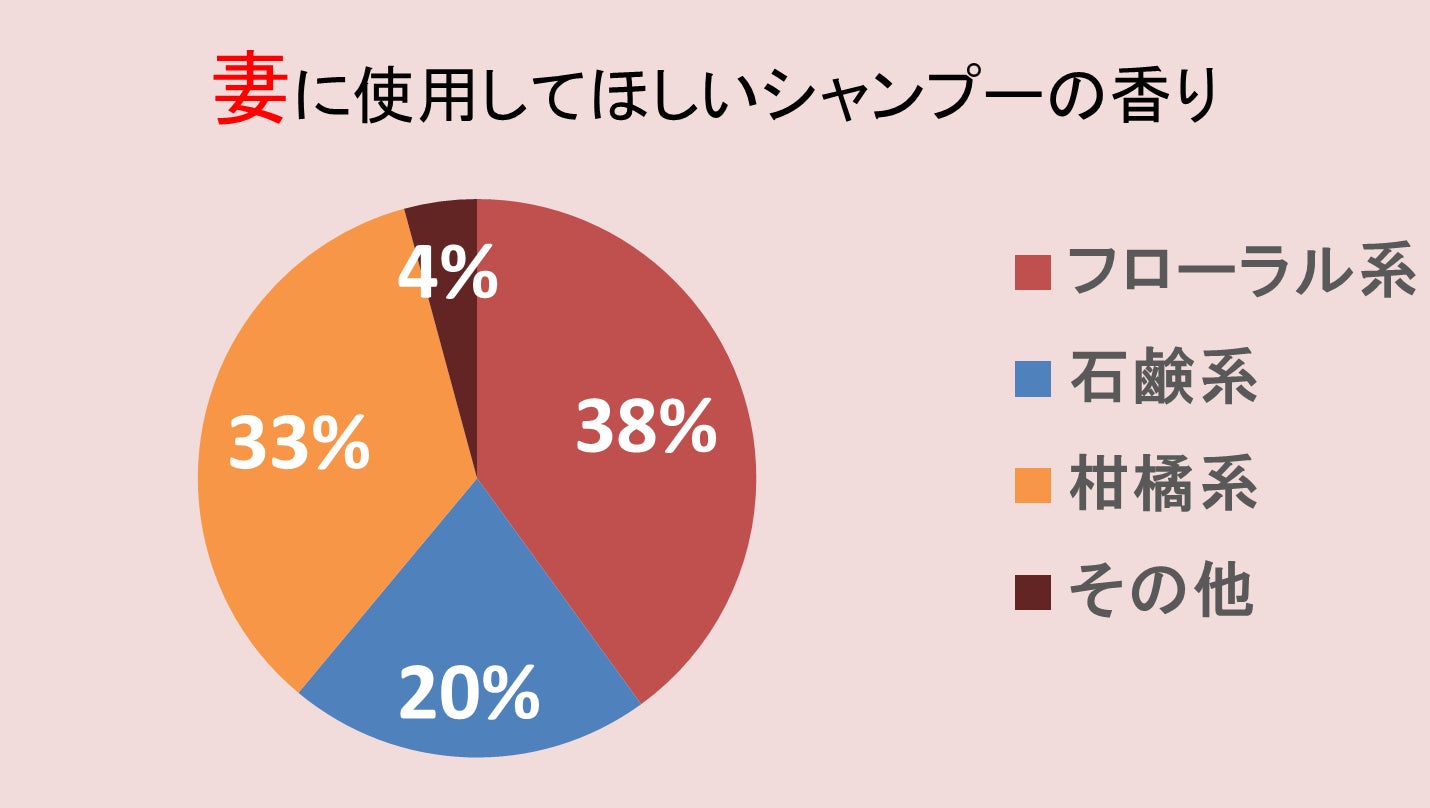 夫は妻に対して「フローラル系」で華やかかつ上品な香りを求め、妻は夫に対して「石鹸系」の不自然過ぎない香りが心地良いと感じているようです。夫婦円満を目指す第一歩として、こちらの調査結果をもとにシャンプー選びをしてみてもいいかもしれません。