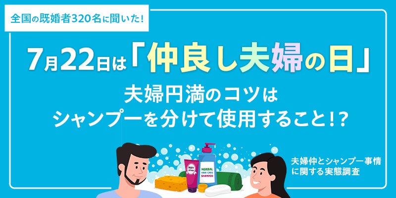 7月22日は「仲良し夫婦の日」全国の既婚男女320名に“夫婦仲とシャンプー事情”について調査約80%が「夫婦仲をより良くしたい」と回答。夫婦円満のコツは、シャンプーを分けて使用すること!?