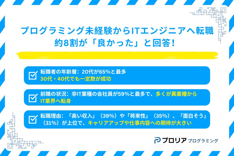 プログラミング未経験からITエンジニアへの転職が、多くの人々によって実現されていることが、この度の調査で明らかになりました。