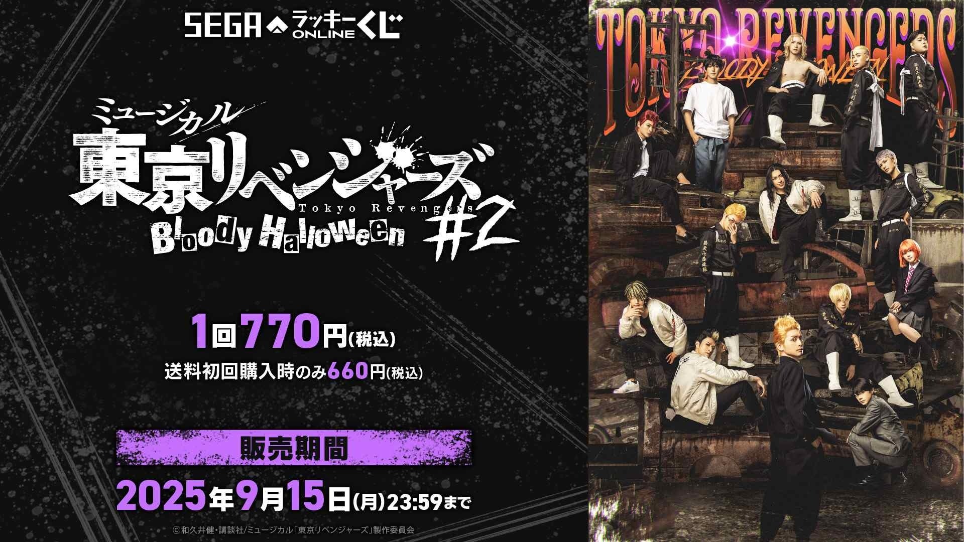 株式会社セガ フェイブは、セガ ラッキーくじオンライン 「ミュージカル「東京リベンジャーズ」#2 Bloody Halloween」を2025年7月18日11時より販売開始いたします。