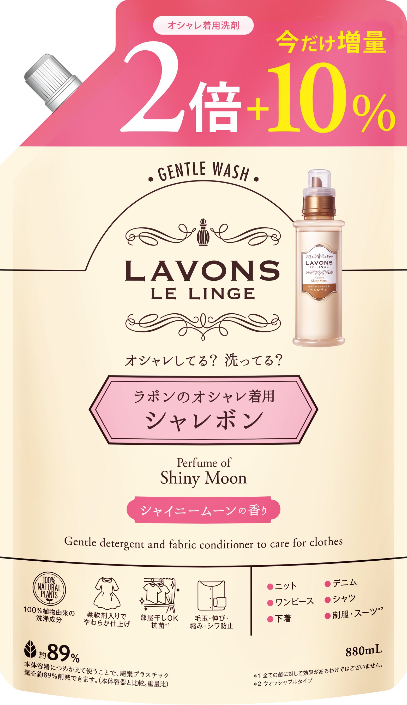『ラボン トゥザムーン』の癒される香りを楽しみながら、オシャレ着用洗剤”シャレボン” でお気に入りの服を大切にケアしましょう。