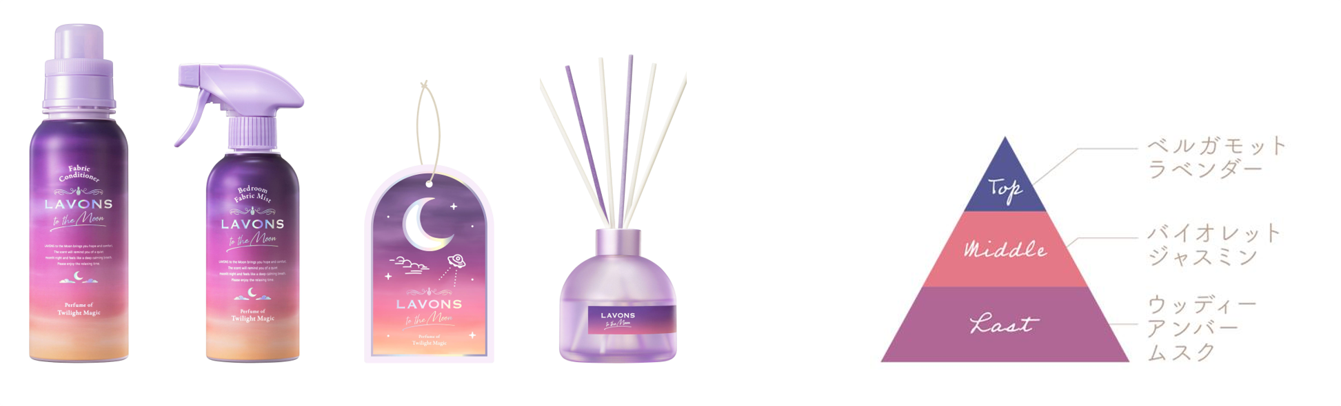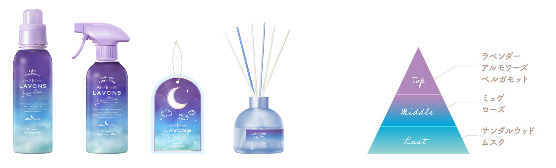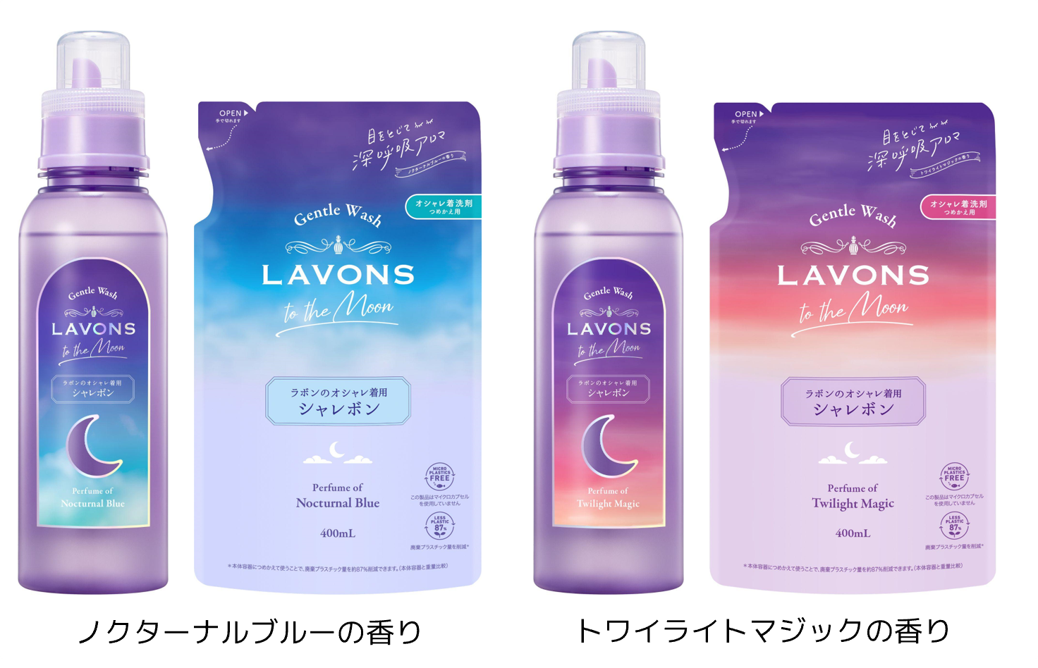 Well Being(ウェルビーイング)ニーズの高まりを背景に、香りによる深いリラックス体験を提供するべく「ラボン」から発売された『ラボン トゥザムーン』シリーズ。思わず深呼吸をしたくなるようなクリアなアンバーとやさしいシトラスを感じる「トワイライトマジックの香り」と、やさしいサンダルウッドと神秘的なアルモワーズがナチュラルに香る「ノクターナルブルーの香り」が人気を博しています。