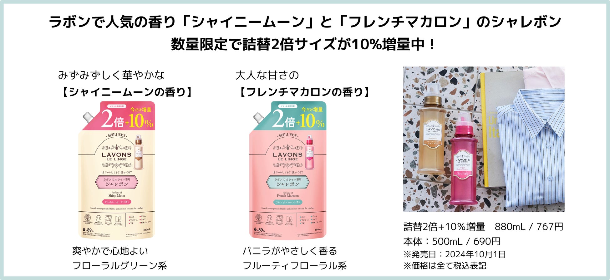 深呼吸アロマシリーズ『ラボン トゥザムーン』から心地よい香りのオシャレ着用洗剤”シャレボン”が新登場!
