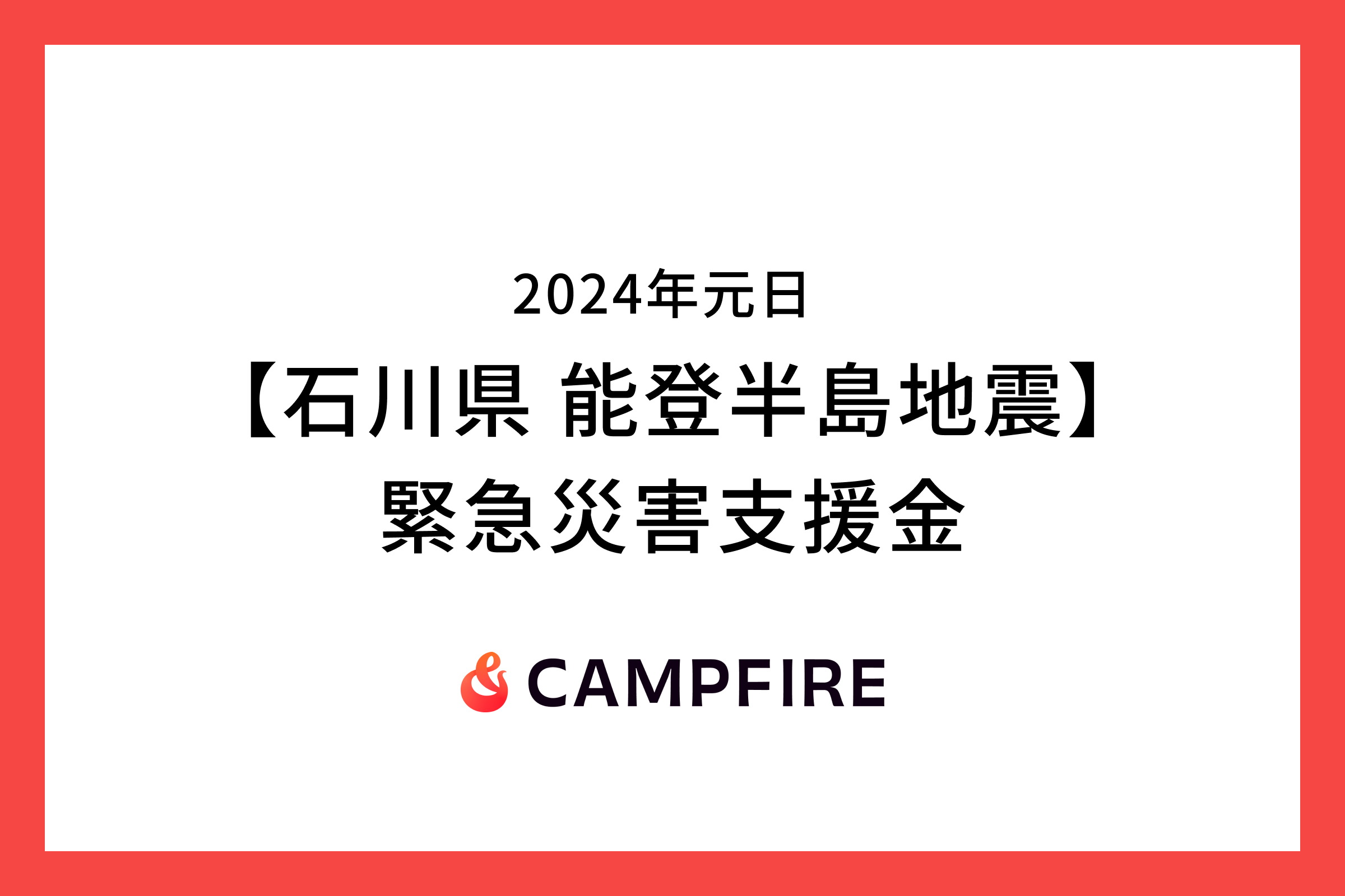 CAMPFIRE、令和6年能登半島地震に対する緊急災害支援金の募集をクラウドファンディングで開始