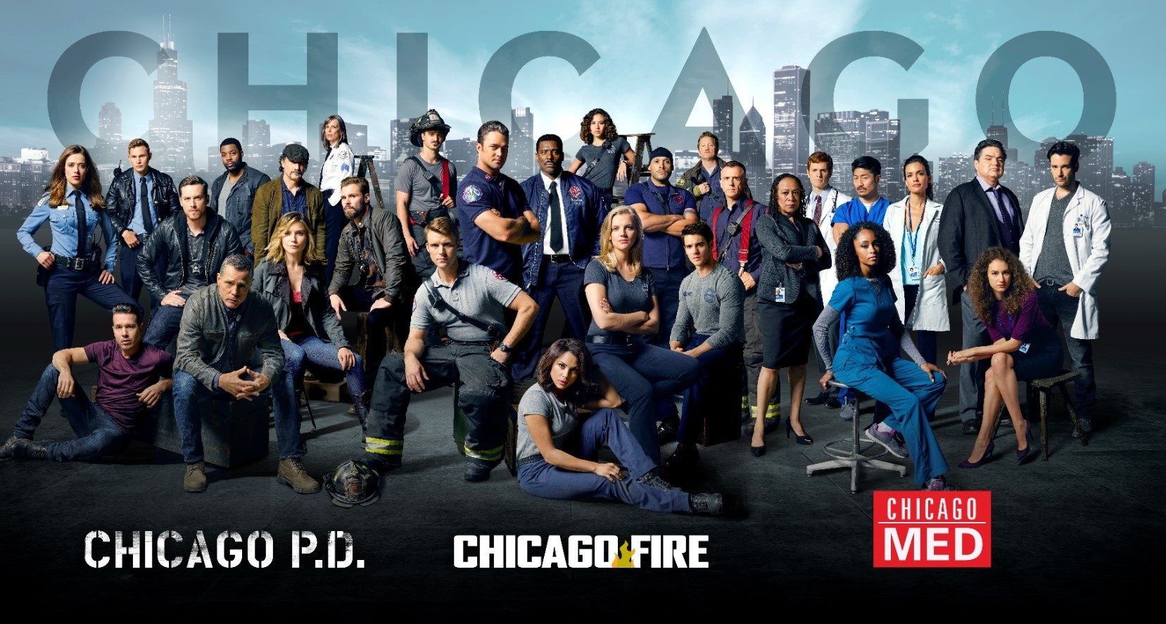 「シカゴ・ファイア」は、シカゴの街を命がけで守る熱い消防隊員たちの活躍を描いたレスキュー・アクション。家族のような深い絆で互いを支え合う消防士たちの姿に胸が熱くなる大人気ドラマで、今年2月に開催された、全米のファン投票によって選ばれるピープルズ・チョイス・アワードでは“ドラマ・ショー・オブ・ザ・イヤー”にノミネートされるなど、放送開始から10年以上視聴者を魅了し続けています。「シカゴ・ファイア」と並ぶ大人気シリーズなのが、シカゴに蔓延る凶悪犯罪に挑む勇敢な敏腕刑事たちの活躍を描くポリス・アクション「シカゴ P.D.」。時に常識から外れた捜査方法と、犯罪捜査のためなら自ら悪に染まることもためらわない刑事ハンク・ボイトの強烈なキャラクターが魅力で、シーズン10でシリーズ通算200話を達成したロングランシリーズです。「シカゴ・メッド」は、シカゴ医療センターの救急部門で繰り広げられる、医療の現場と奮闘する人々を描いた救命医療ドラマ。緊迫した救命シーンに加え、医師や看護師たちによる熱い人間ドラマが胸を打つ人気シリーズです。そして「消防」「警察」「医療」それぞれ違う分野でありながら、シカゴの街や人を守るという共通の使命を持つ彼らが作品をまたいで登場するクロスオーバーエピソードも、本シリーズの大きな魅力となっています。