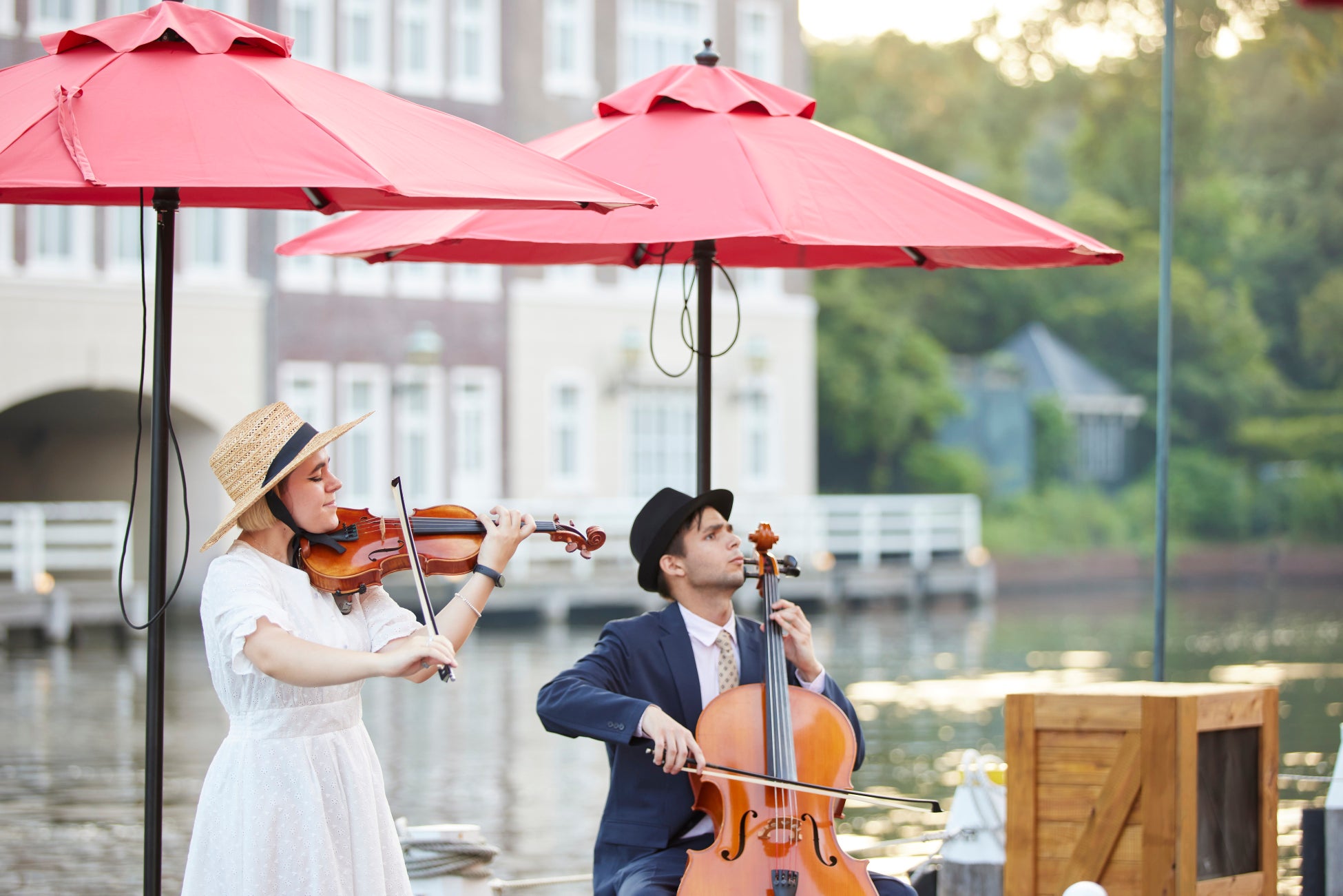 ヨーロッパの街並みに囲まれたテラスで、グルメとエンターテインメントを楽しむ「運河テラスバル」。秋は、ハロウィーングルメとワインを嗜む「秋のグルメ祭」を初開催いたします。ハウステンボスの秋イベントとして毎年大好評の「ワイン祭」が、今年は100種類のワインを開放感あふれる運河沿いのテラス席でお楽しみいただけます。さらに、会場内ではミュージシャンが生演奏を披露。日本にいるとは思えないような贅沢に酔いしれるひとときをお過ごしください。