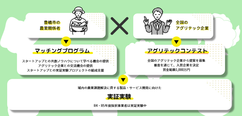 愛知県豊橋市は、スタートアップと地域農業関係者とが共創する実証開発プロジェクト「TOYOHASHI AGRI MEETUP」を令和4年度から始めています。