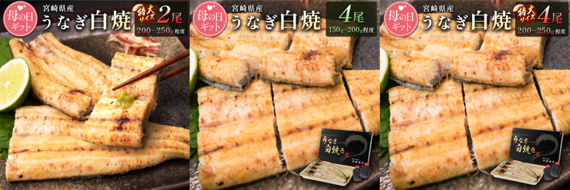 【母の日にお届け】本当に美味しいうなぎでしか味わえない「うなぎ白焼き」。宮崎県新富町ふるさと納税で受付中