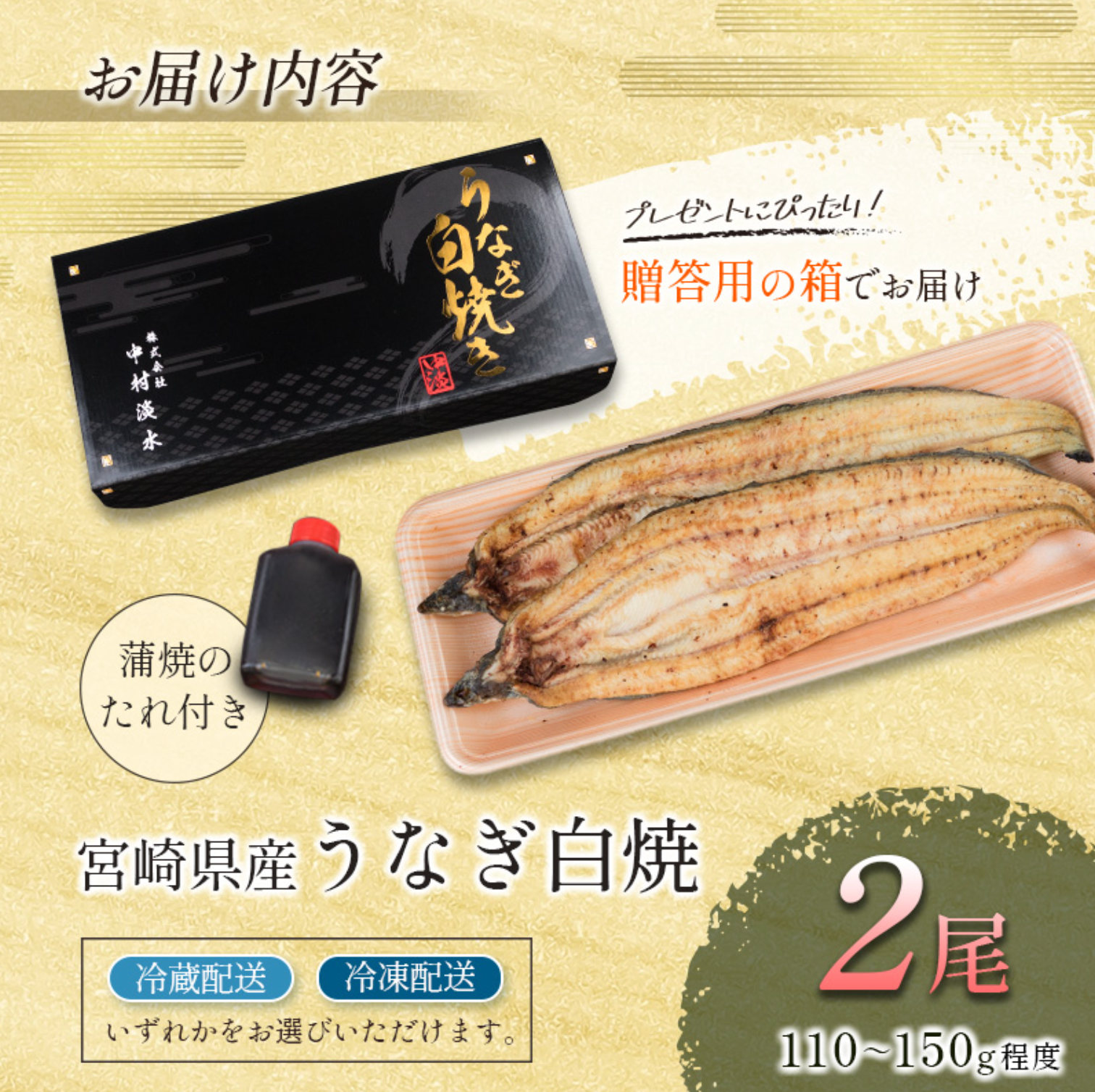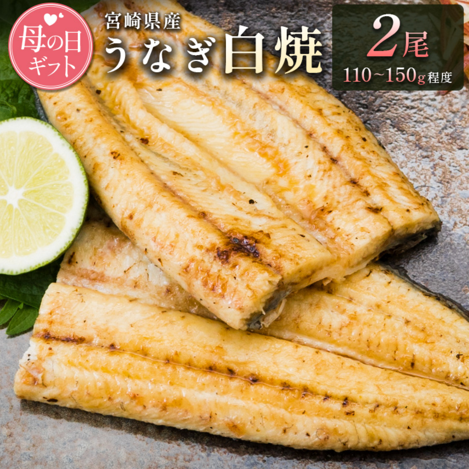 [母の日]うなぎ白焼きギフト 2尾(110~150g/1尾あたり)宮崎県産鰻 蒲焼きタレ付(50ml×1本)