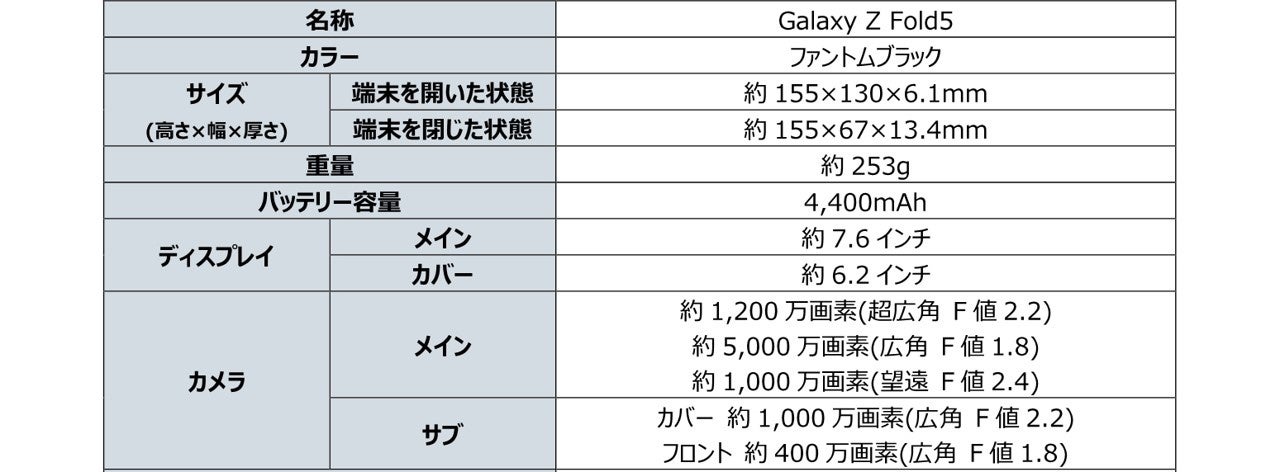 「Galaxy Z Fold5」の特長は、以下のとおりです。