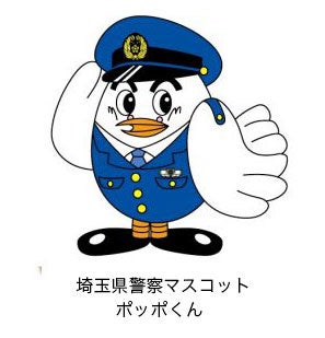 埼玉県警察マスコット「ポッポくん」が来場。警察官と一緒に特殊詐欺防止を訴えるチラシを配布します