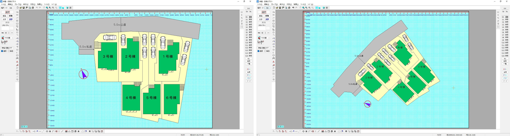図面全体や一部を、任意の角度で傾けることができるようになりました。