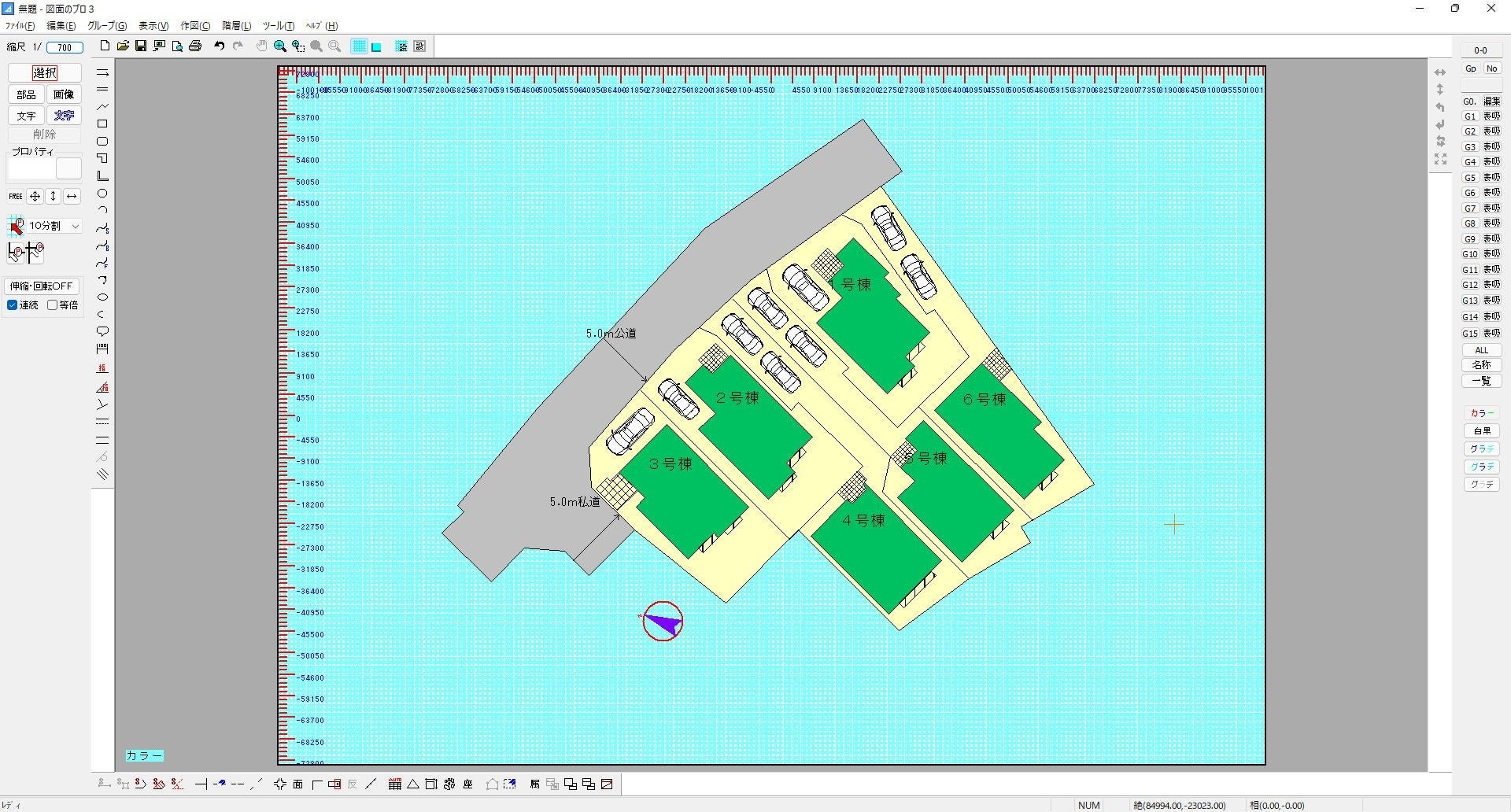 作図する際に模様を指定できるようになりました。従来版では作図後に模様を設定していましたが、その手間を省けます。
