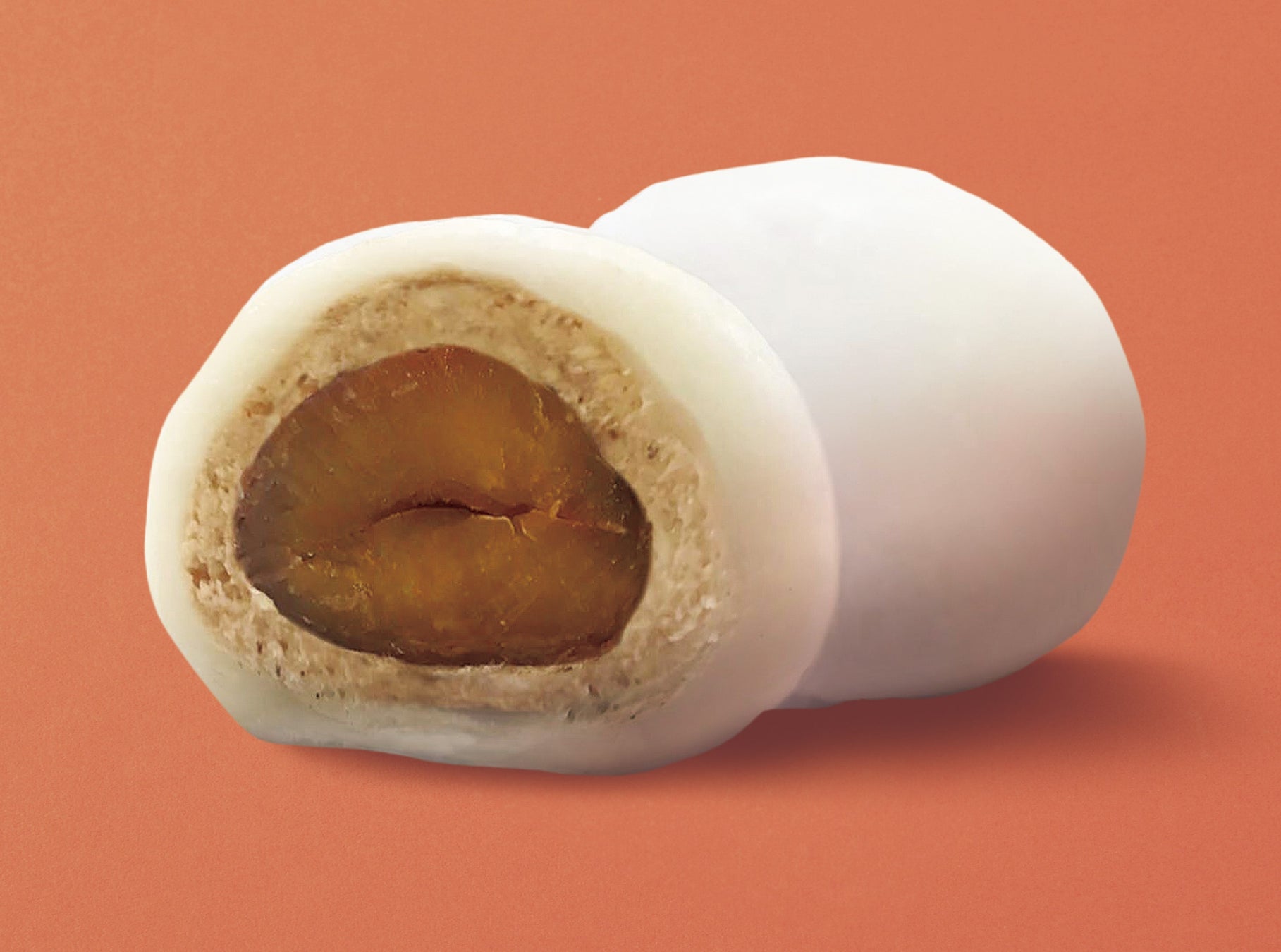 おはぎとも大福とも違う、ふんわりとした独特の食感に、よもぎの爽やかな香りとほんのり甘い粒餡の味わいを楽しめるお餅です。