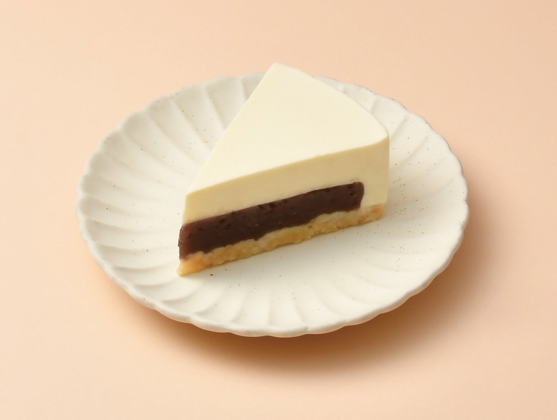 レアチーズとこし餡はなめらか、ボトムのクッキーはサクッと。味わいはもちろん、食感も楽しめる異色のスイーツです。
