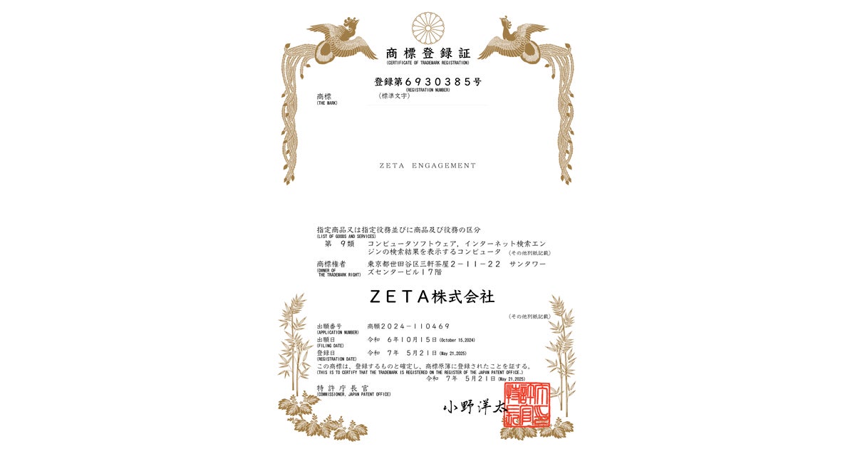 『ZETA ENGAGEMENT』商標登録のお知らせ