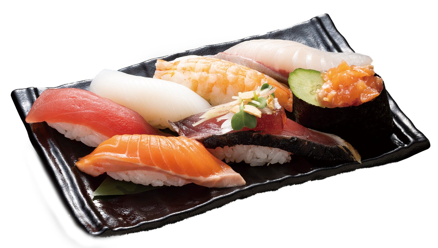 旬のネタを盛り込んだ【秋の七貫盛り】を、単品より88円お得な(※)、税込990円の感謝価格にてご提供します。