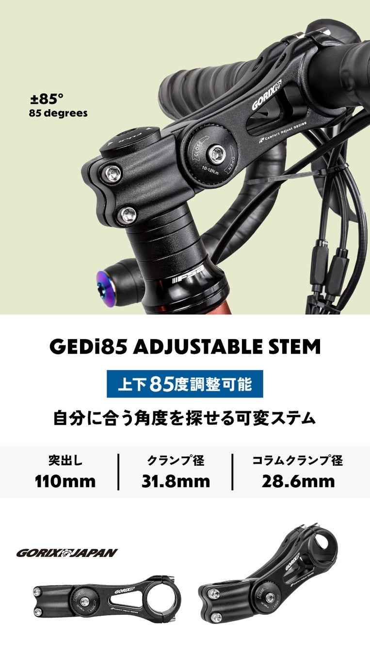 【新商品】【上下85度の調整可能!!】自転車パーツブランド「GORIX」から、可変ステム(GEDi85)が新発売!!