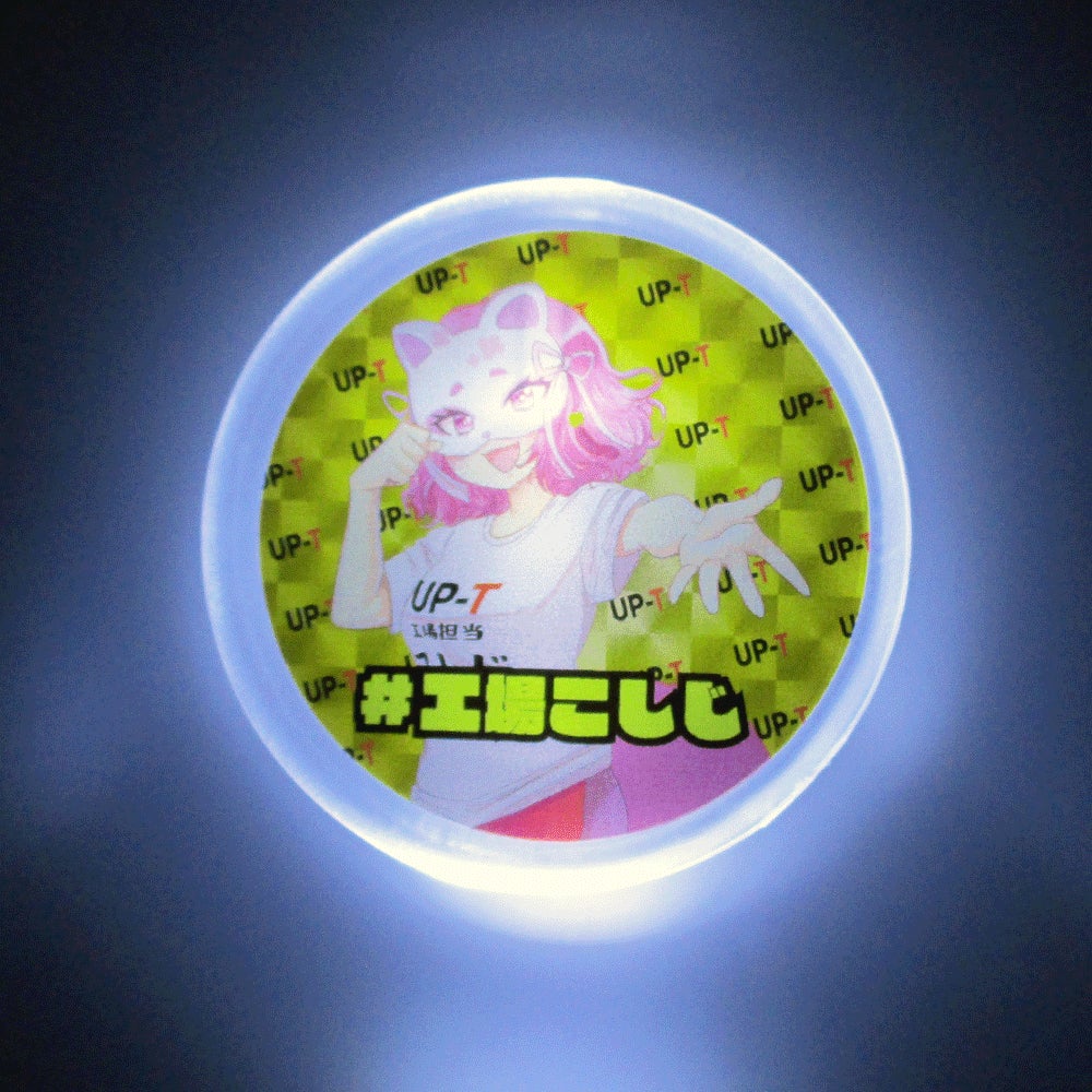UP-Tから、"ライティングバッジ(丸形)"が新登場しました。通常のバッジと異なり光らせることが可能です。ボタンを押すことで「ON →点灯→ 点滅(高速)→点滅(低速)→OFF」と光のパターンを切り替えられます。