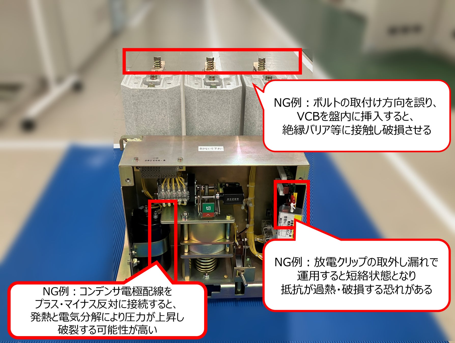 現在、第一弾の適用先として、電力や産業分野の保守事業を担う株式会社日立パワーソリューションズ(以下、日立パワーソリューションズ)にて、技術検証を開始しています。例えば、受変電設備の配電盤内の主機器である真空遮断器(Vacuum Circuit Breaker,VCB)では、複数の保守員で点検作業を行っているため、ボルトの取付け方向の誤りやコンデンサの電極配線接続ミス、放電クリップの取外し漏れといった人的ミスの発生の懸念があります。そのため、保守員のトレーニングセンターにおいて、従来は紙のチェックリストで対応していた原状復帰の確認作業について、Gemini Enterprise を活用したAIエージェントの適用可能性について検証を開始しました。