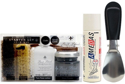 シューケアスターターセットと防水スプレー、靴べらのセットです。