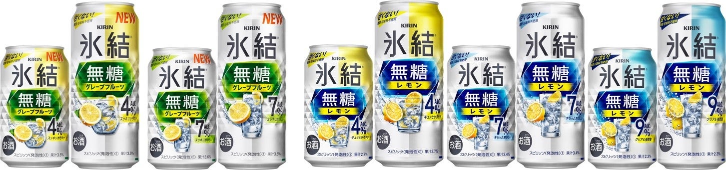 「キリン 氷結®無糖 レモン」(Alc.4%、Alc.7%、Alc.9% 各350ml缶・500ml缶)