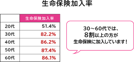 ※上記加入率は、民間の生命保険会社や郵便局、JA(農協)、県民共済・生協等で取り扱っている生命保険や生命共済(個人年金保険やグループ保険、財形は除く)の加入率