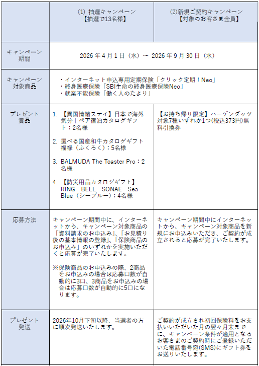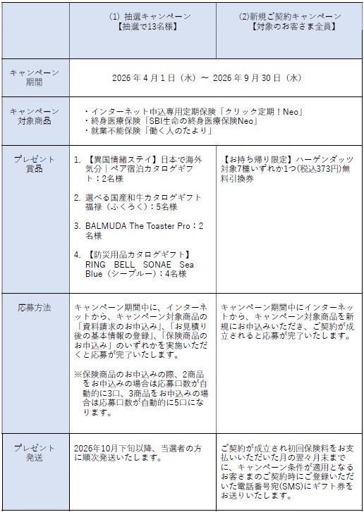 ※本キャンペーンの詳細は、期間中にSBI生命ウェブサイトに掲載されるキャンペーンページにてご確認ください。https://www.sbilife.co.jp/lp/SBILife_campaign_2000202.html