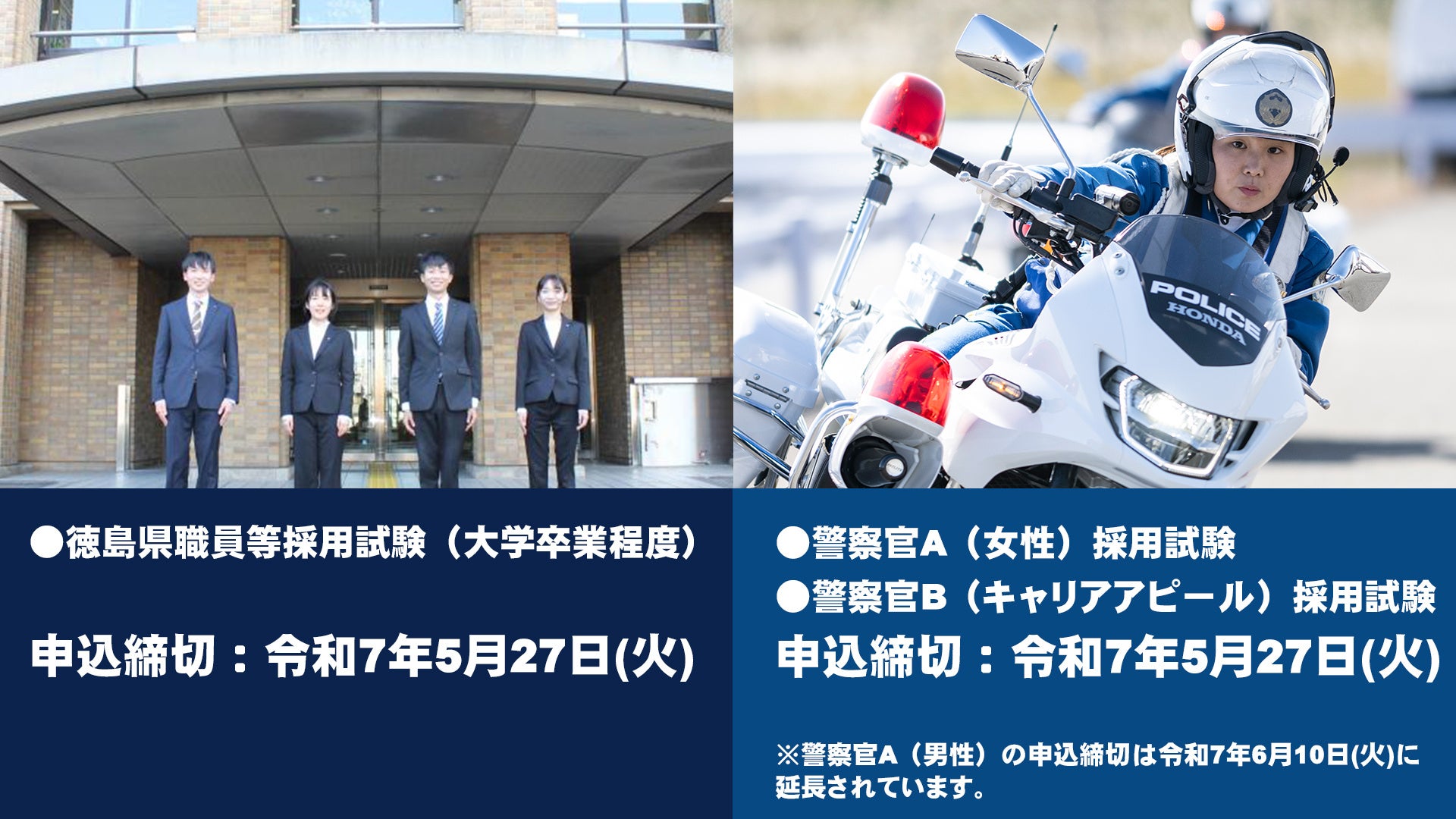 徳島県職員等採用試験・警察官採用試験 申込締切迫る!!