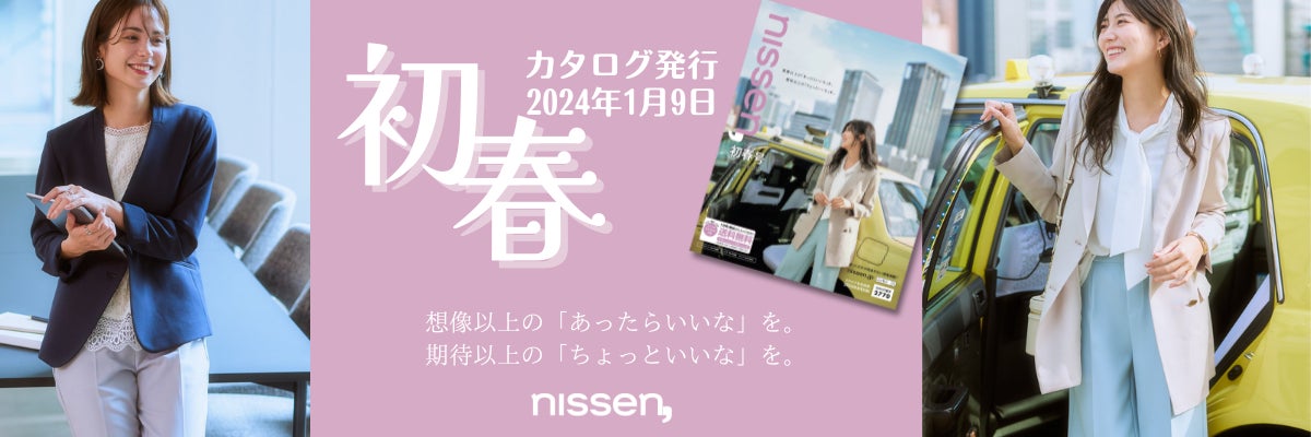 お客様の声に応える商品満載の「nissen,」初春カタログを1月9日に発行しました。今年の巻頭企画は「働く服改革」。新作や人気商品を多数品揃えしました。2024年のお仕事服は、ぜひニッセンで!