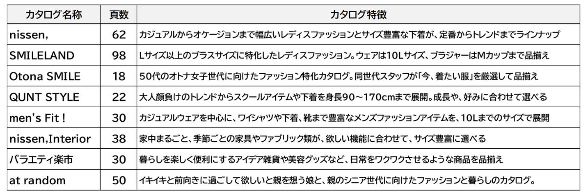 株式会社ニッセン(本社:京都市南区、代表取締役社長:羽渕淳)は、「初春号」カタログ8誌を、1月9日(火)に発行しました。『お客様の声に、想いに応える』をテーマに開発した商品やサービス満載です。また、コンセプトをリニューアルし、装いも新たになったカタログも登場します。ニッセンオンラインショップ(https://www.nissen.co.jp/)で最新カタログの誌面閲覧や掲載商品の購入、WEB限定キャンペーンをご覧いただけます。