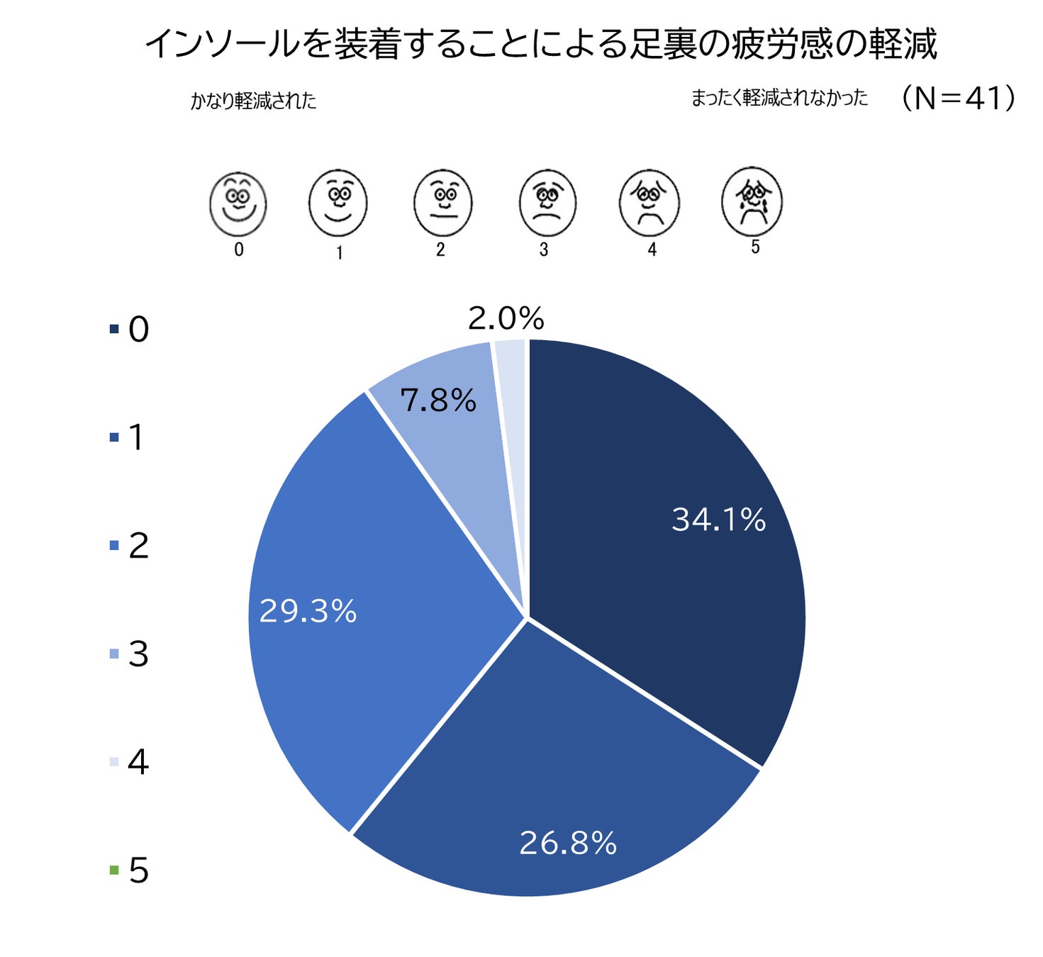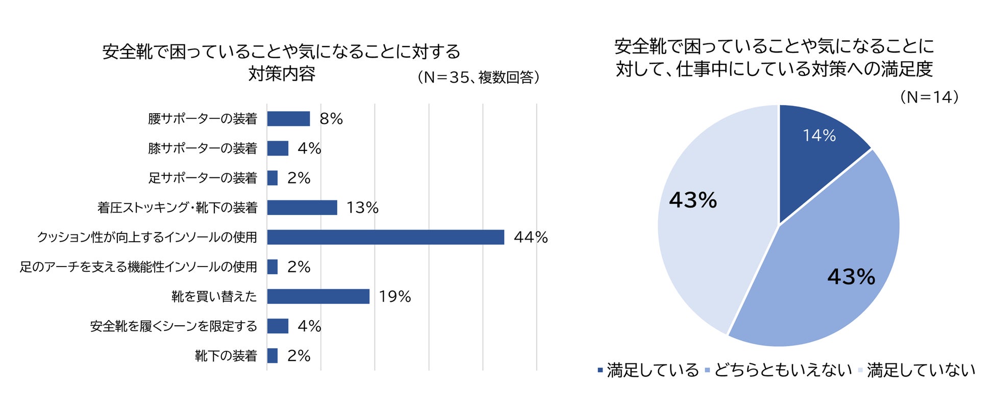 その一方で、その対策に満足していると回答した人は14%にとどまっており、労働現場では機能性の高いインソールが求められていることが考えられます。