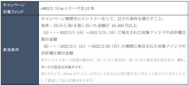 ■【SBIの人気ファンドキャンペーン祭】eMAXIS Slimで積立デビュー!増額も!1万円相当があたるキャンペーン 概要