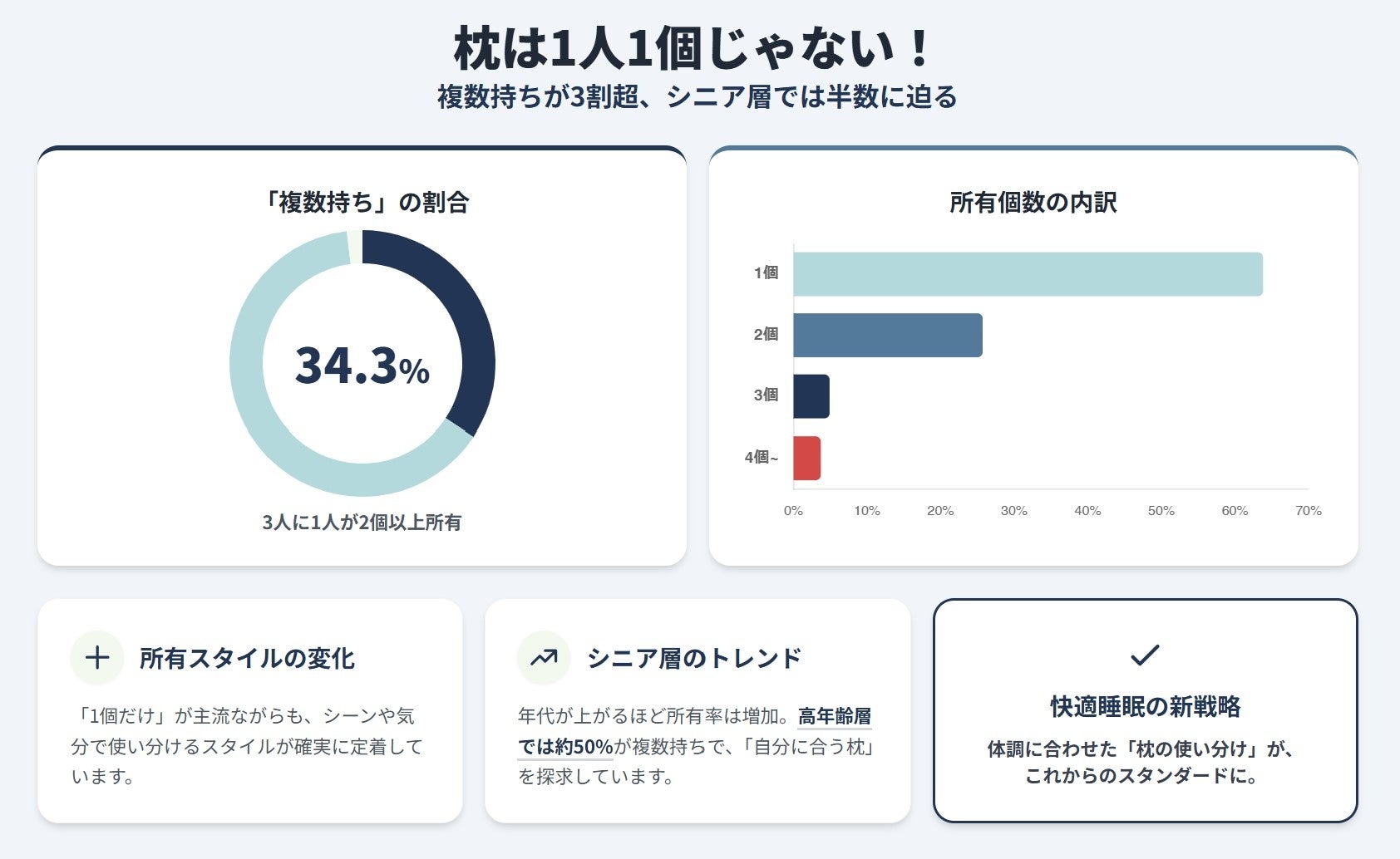・枕の複数持ちは34.3%。若年・中年・シニア問わず「枕の多様化」の時代に突入